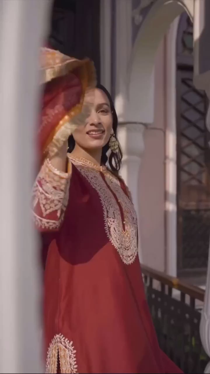 AFSAANA - DEEP RED SHORT KURTA WITH SALWAR AND DUPATTA