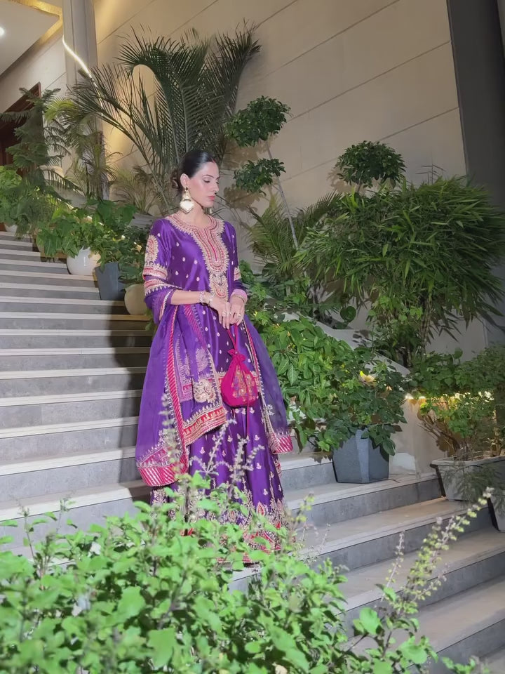 Shruti Juneja IN AREESHA - DEEP PURPLE SHORT KURTA WITH SHARARA AND DUPATTA