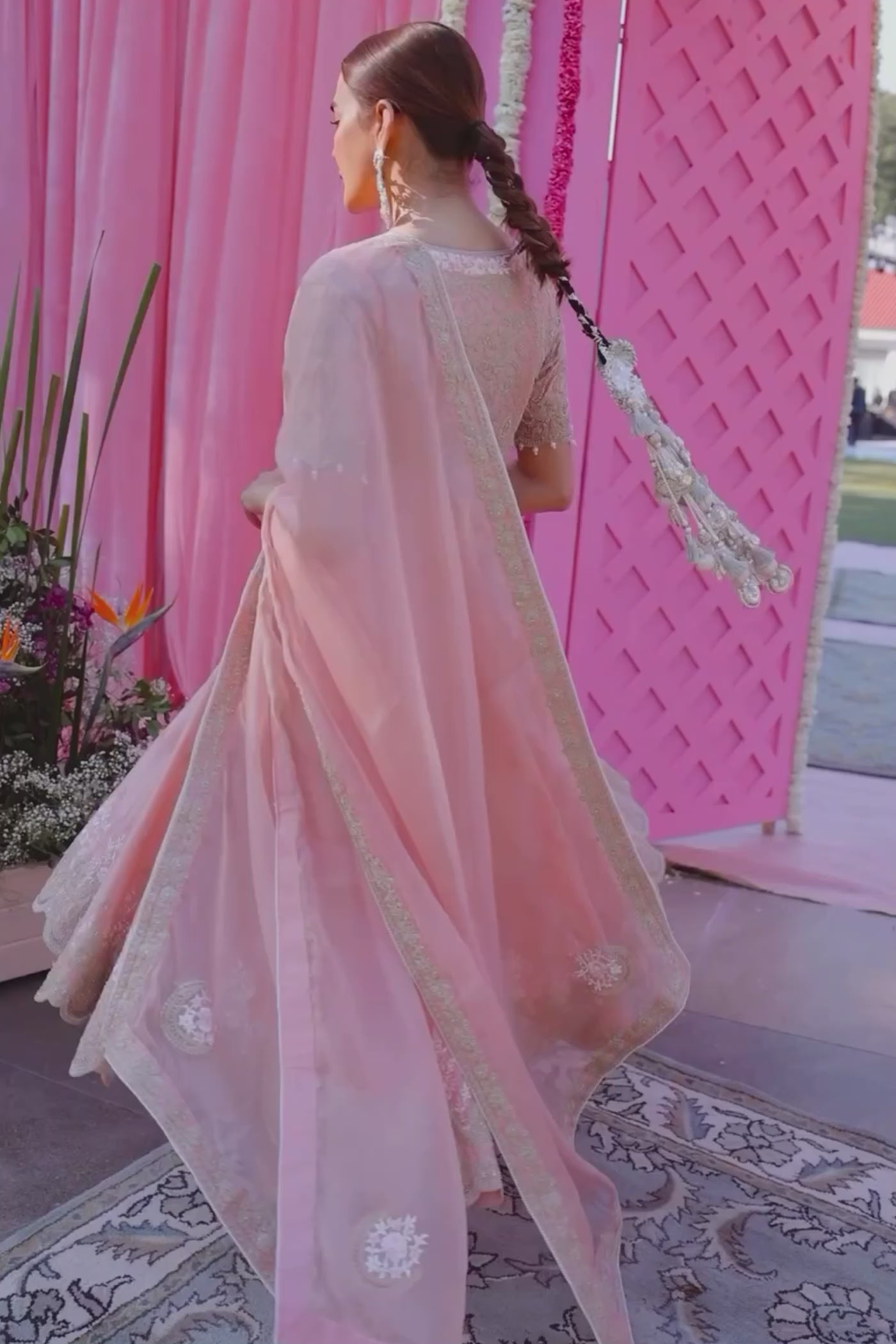Wasifa - Off Rose Ankle Length Anarkali with Chooridaar and Dupatta