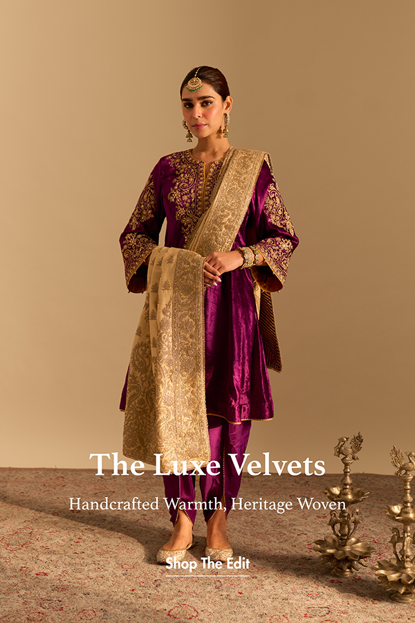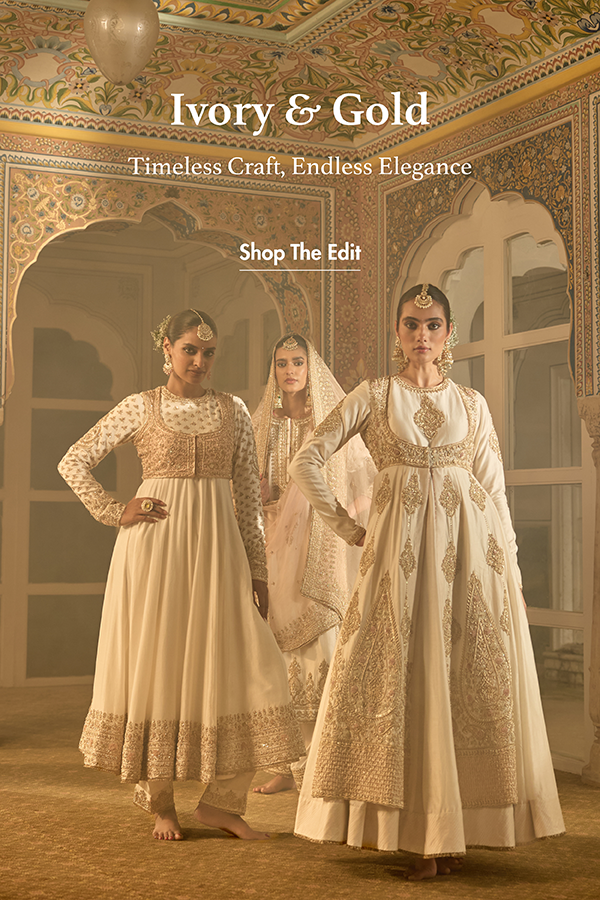 Nyasia- soft beige habutai silk gota patti embroidered choga